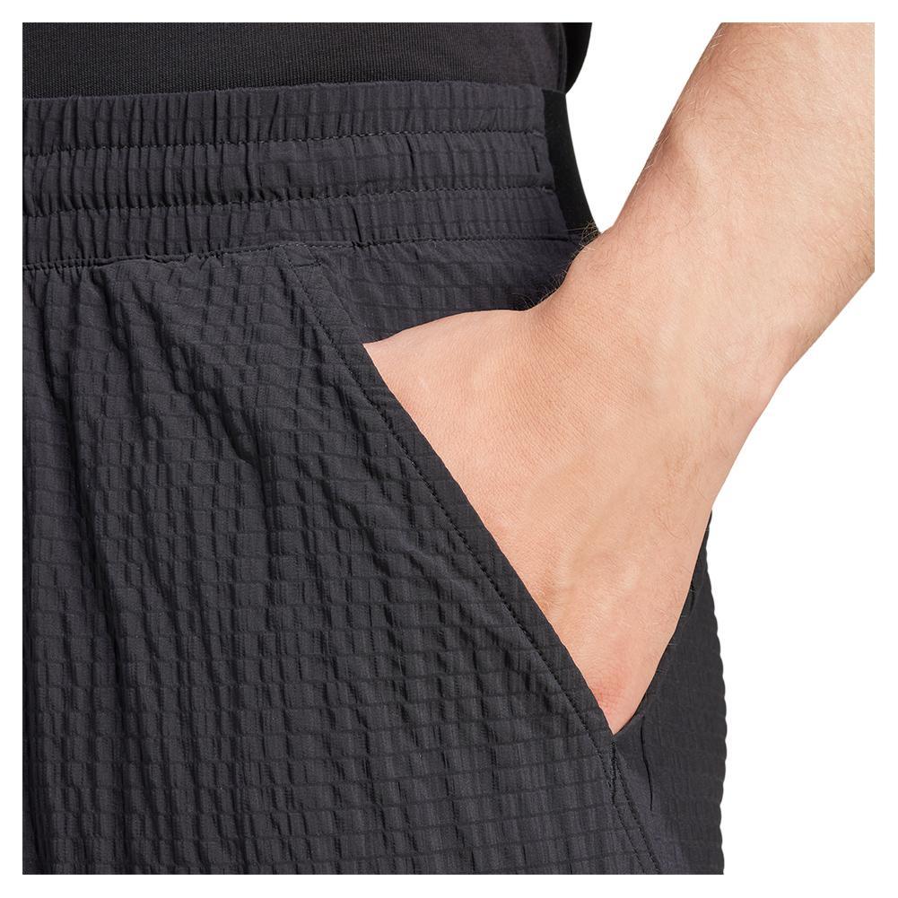Get a leg up with the adidas Mens Pro Ergo Court Short. The ergonomic construction allows for greater freedom of movement, with an inner leg mesh gusset that further enhances your movement range while also providing breathability. Stretch-woven AEROREADY fabric improves on comfort and breathability to help you stay focused on the match. An innovative pocket design prevents Court balls from interfering with your movements so you can always perform at your best.
