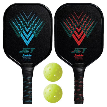 The Franklin Jet Aluminum Pickleball Paddles and Balls 2 Player Set is perfect for getting yourself and a friend started on the fastest-growing sport in the nation. With their aluminum cores, these paddles offer superior durability to give lasting performance as you develop your skills. Included with the set are X-40 pickleballs that are suitable for outdoor play, engineered for a balanced flig...