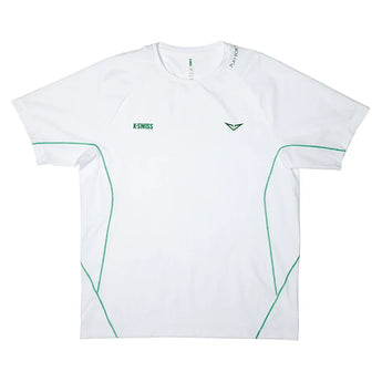 The K-Swiss Men's Rebluv WIM Court Top embodies Wimbledon tradition, combining the traditional Court whites with contrasting green details that represent the grass courts. Quick-drying materials help manage moisture to keep players feeling cool when the heat is on. A focus on sustainability means recycled materials were used to craft this crew neck tee without sacrificing quality.