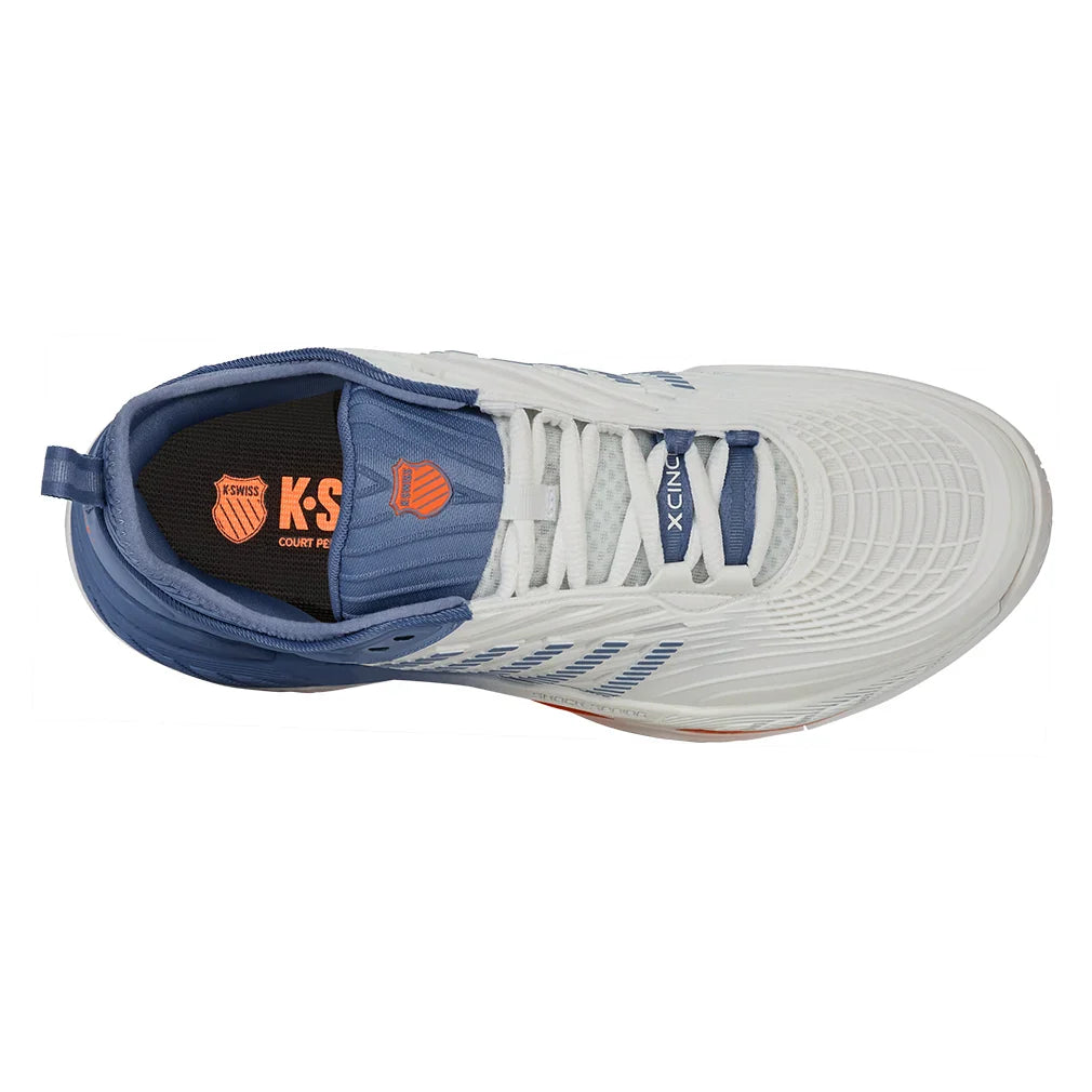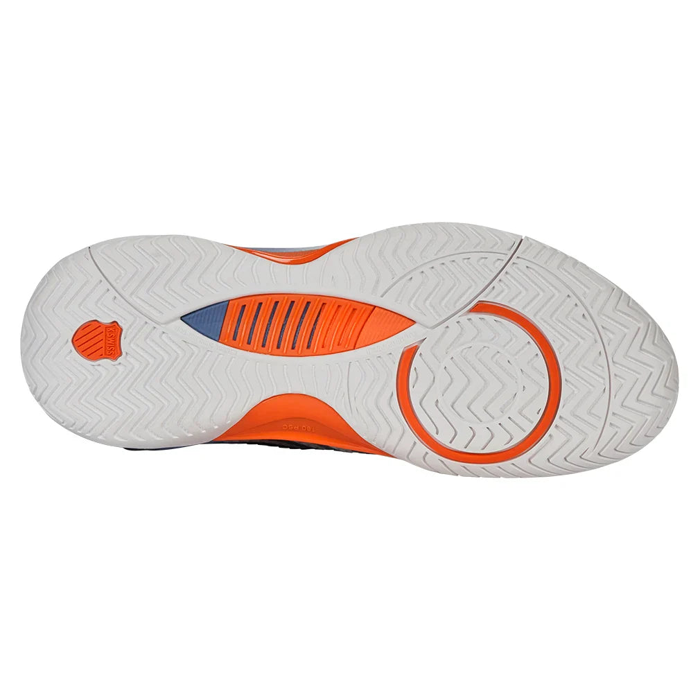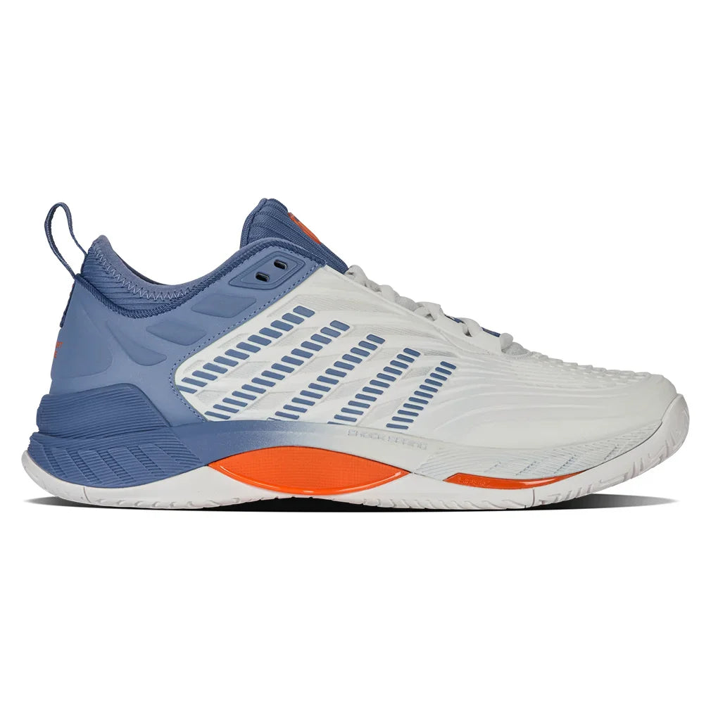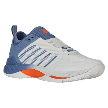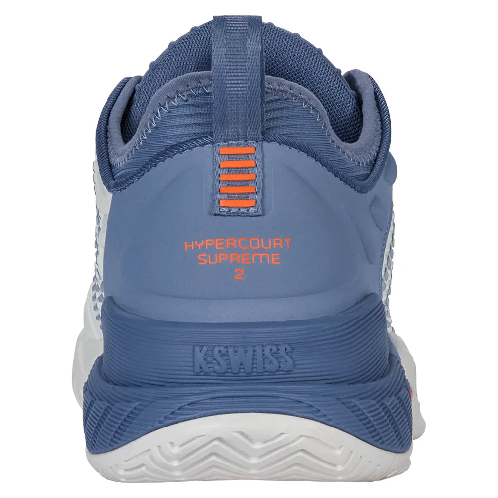 The K-Swiss Men's Hypercourt Supreme 2 Court Shoe is an update to one of K-Swiss's most popular Court shoes. Key features are a more secure fit, increased support, and more outstanding durability while maintaining maximum comfort. The Durawrap X upper provides support and drag protection while keeping a flexible feel as you track down the next ball. The Dual-density midsole utilizes the lightweight Surgelite external foam for maximum comfort and support. A high rebound Shock Spring inner foam on the forefoot allows a quicker reaction in every step. The Dragguard 7.0 rubber outsole is formed into a modified herringbone tread pattern for traction and durability on all court surfaces. The newly engineered soft bootie collar gives a more secure fit around the ankle.