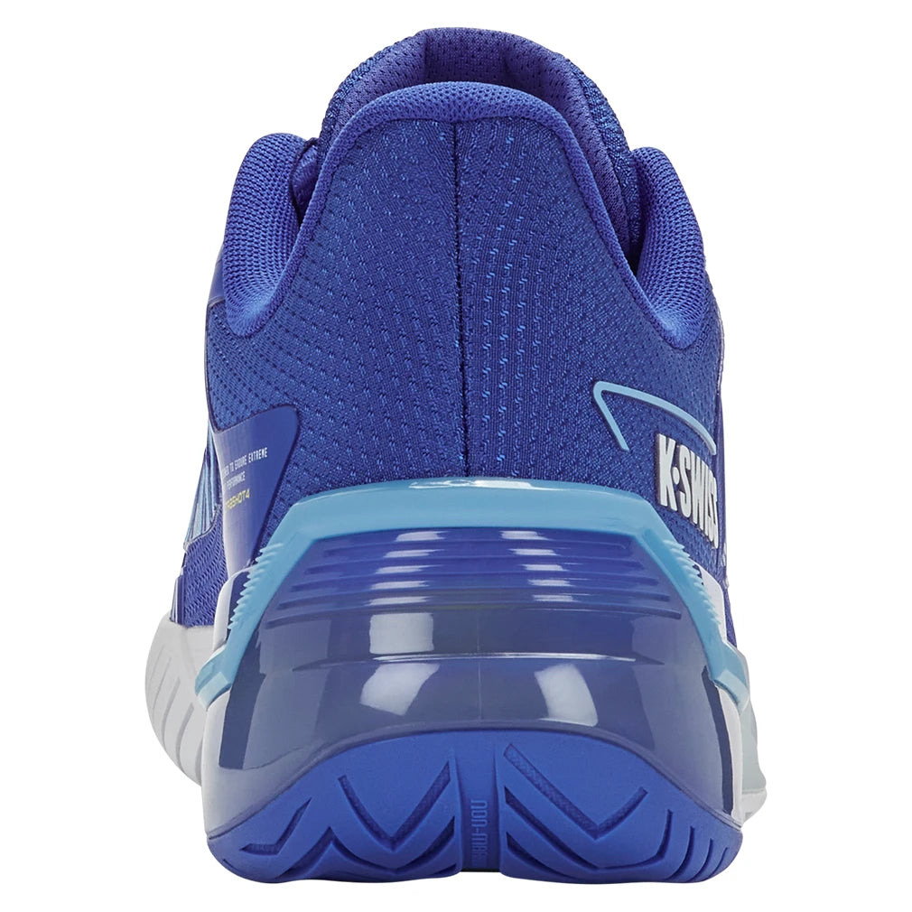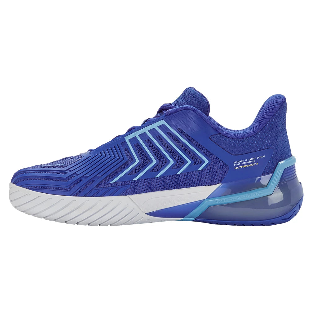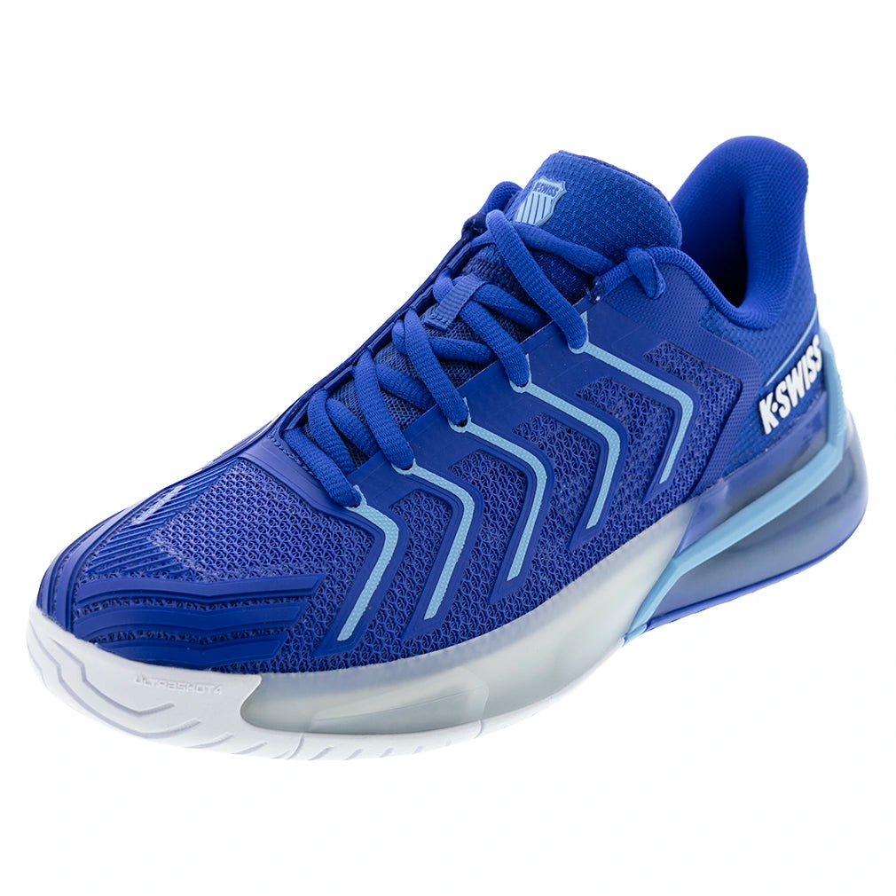 The K-Swiss Men's Ultrashot 4 Tennis Shoes are the latest evolution of the renowned shoe worn by ATP and WTA players. Crafted for those who seek peak on-court performance, the Ultrashot 4 delivers unparalleled energy return with Surge 7.0 midsole technology. Experience unrestricted lateral movement and stability with a custom graphite winglet, combined with a new outsole, enhanced with Aosta 7.0, which ensures superior grip, traction, and durability.