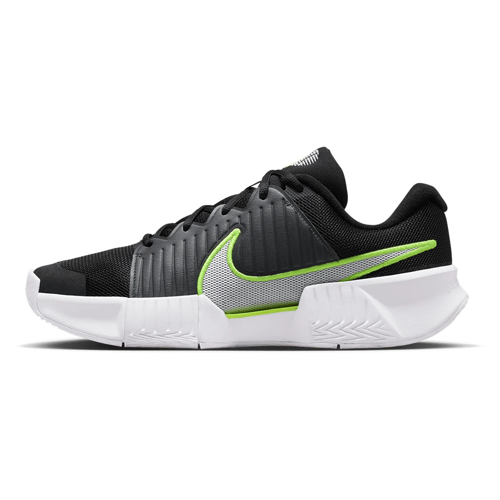 The new Nike Men's GP Challenge Pro Shoes offer a wide base for stability and soft foam cushioning for the midsole. The stability is further enhanced by a midfoot plastic plate, which helps with quick direction changes. The medial toe has extra rubber to help withstand excessive wear and tear, and the forefoot is protected with high-abrasion rubber for added traction. The traditional U-throat design provides easy entry and adjustment, and an extra-padded tongue is constructed with breathable mesh for cool comfort.