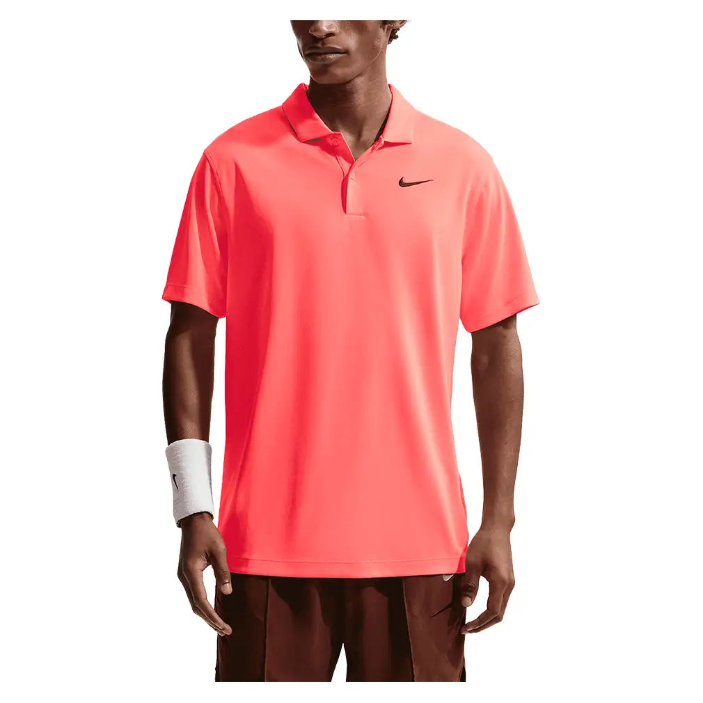 Rock a timeless look in the Nike Men's Court Dri-FIT Solid Polo. Its smooth 2-button placket is comfortable to the touch and gives a modern touch. The knit fabric is made using 100% recycled polyester fibers and is designed with Nike Dri-FIT technology to wick away sweat, keeping you dry and comfortable throughout the match.