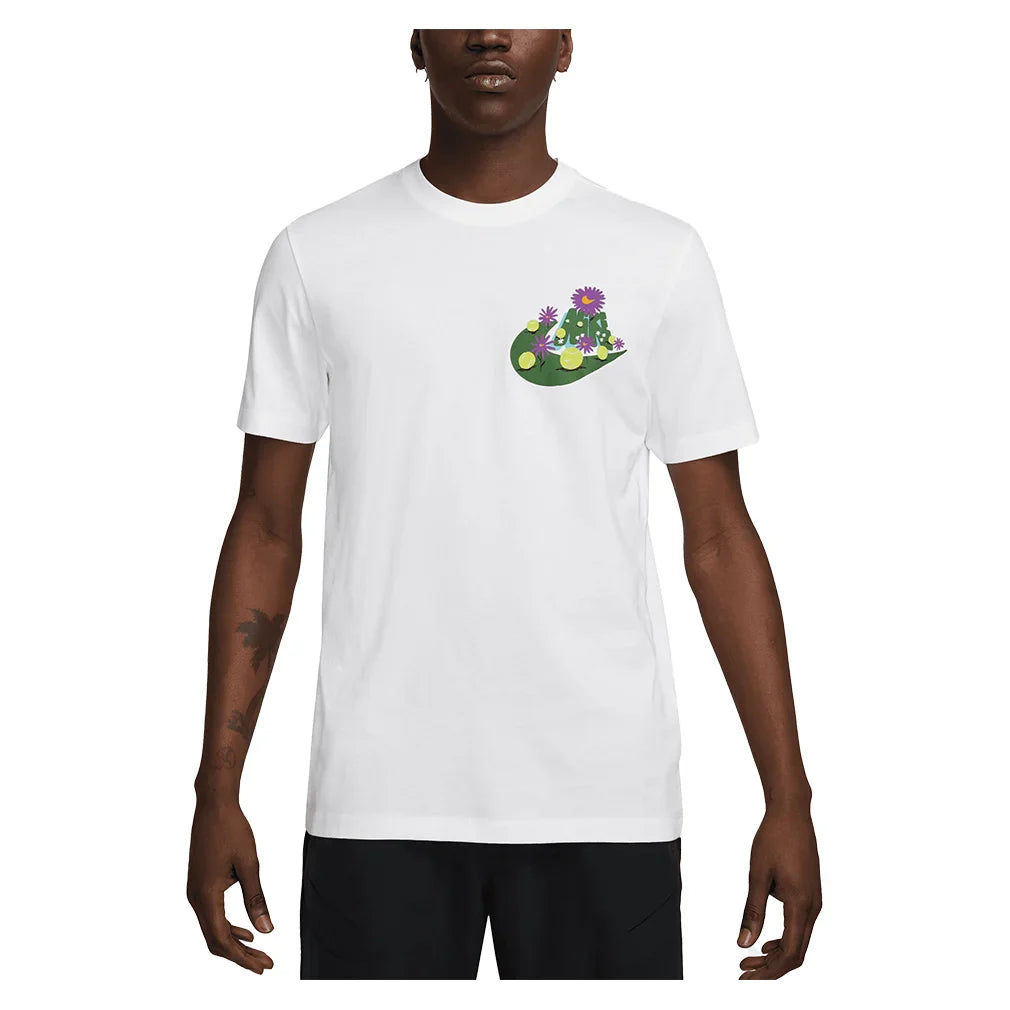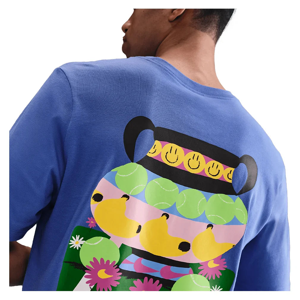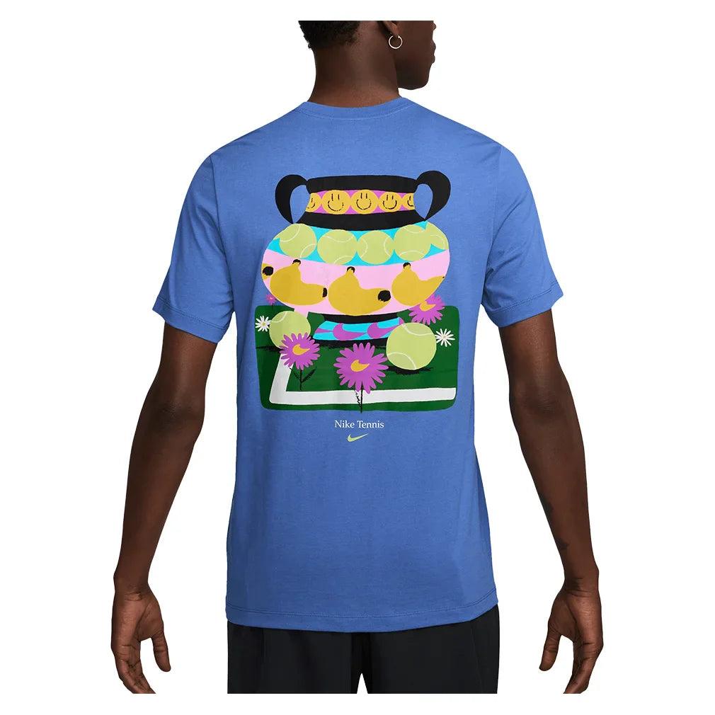 The Nike Men's Court Court Tee celebrates Court culture with its vibrant and fun graphic prints. A crew neck design and midweight cotton fabrics ensure the utmost comfort while you play a friendly match or cheer on your favorite players.