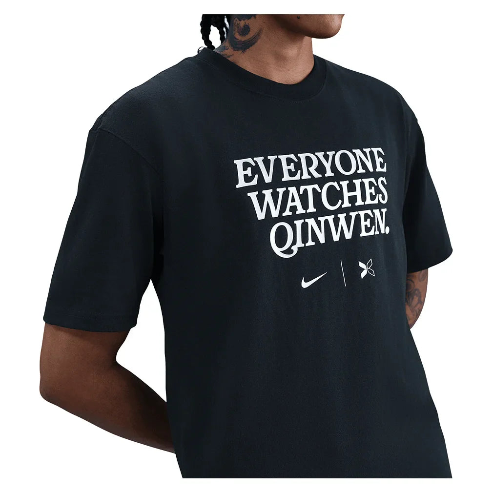 Sport the pros with the Nike Men's Qinwen Zheng Court T-Shirt. This collaboration tee celebrates rising Court star Qinwen Zheng in partnership with TOGETHXR, bringing together athletic inspiration and street-ready style. Its roomy fit and soft heavyweight cotton deliver that structured feel that looks sharp while keeping you comfortable, whether you're on the court or representing your Court fandom around town.
