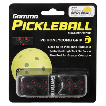 The Gamma Honeycomb Pickleball Replacement Grip will enhance the feel of any paddle. The surface is perforated to help wick away moisture and it maintains its tackiness. The grips are 31" long and maintain a tacky and absorbent feel.