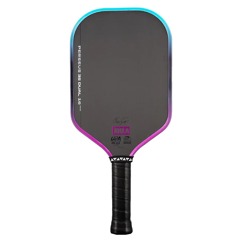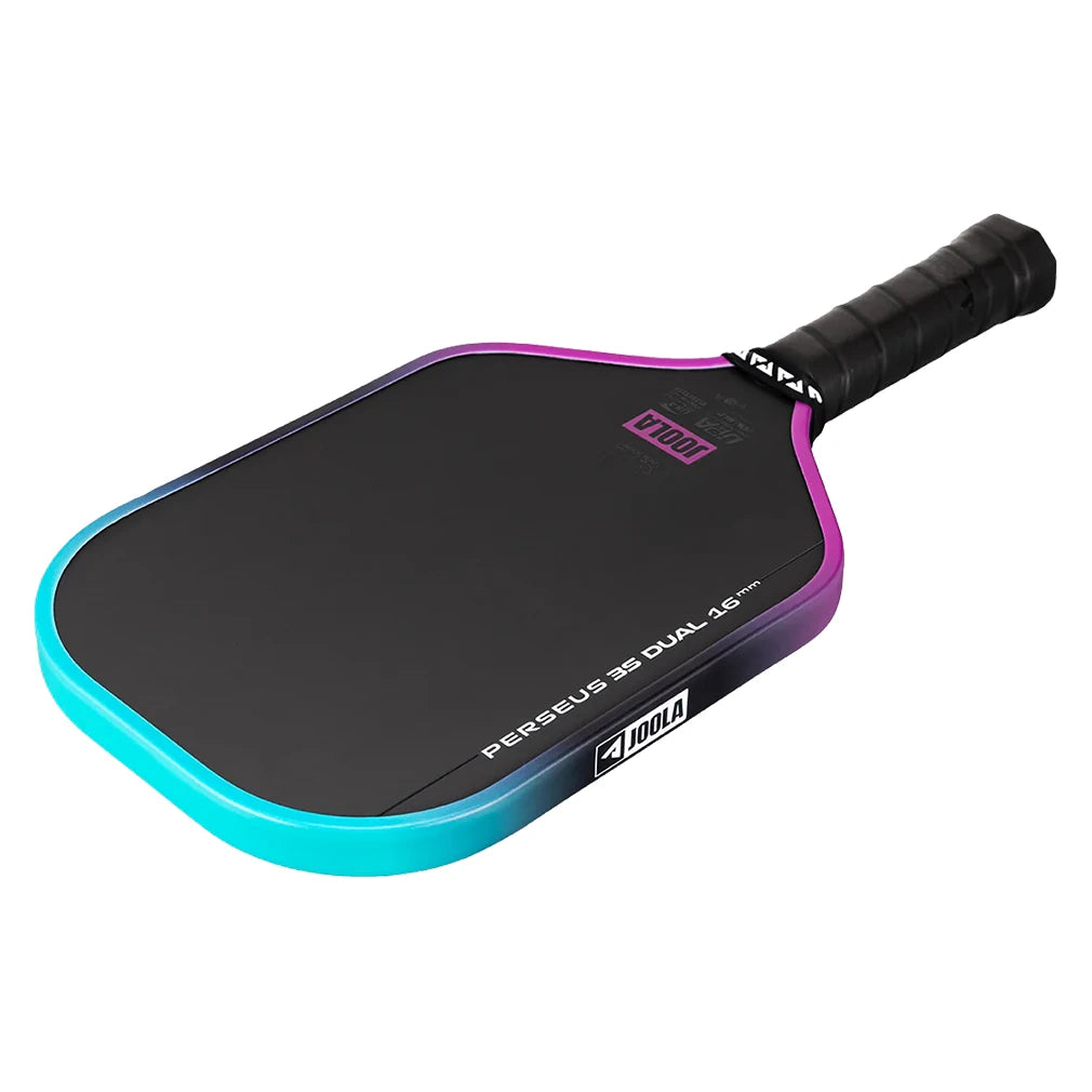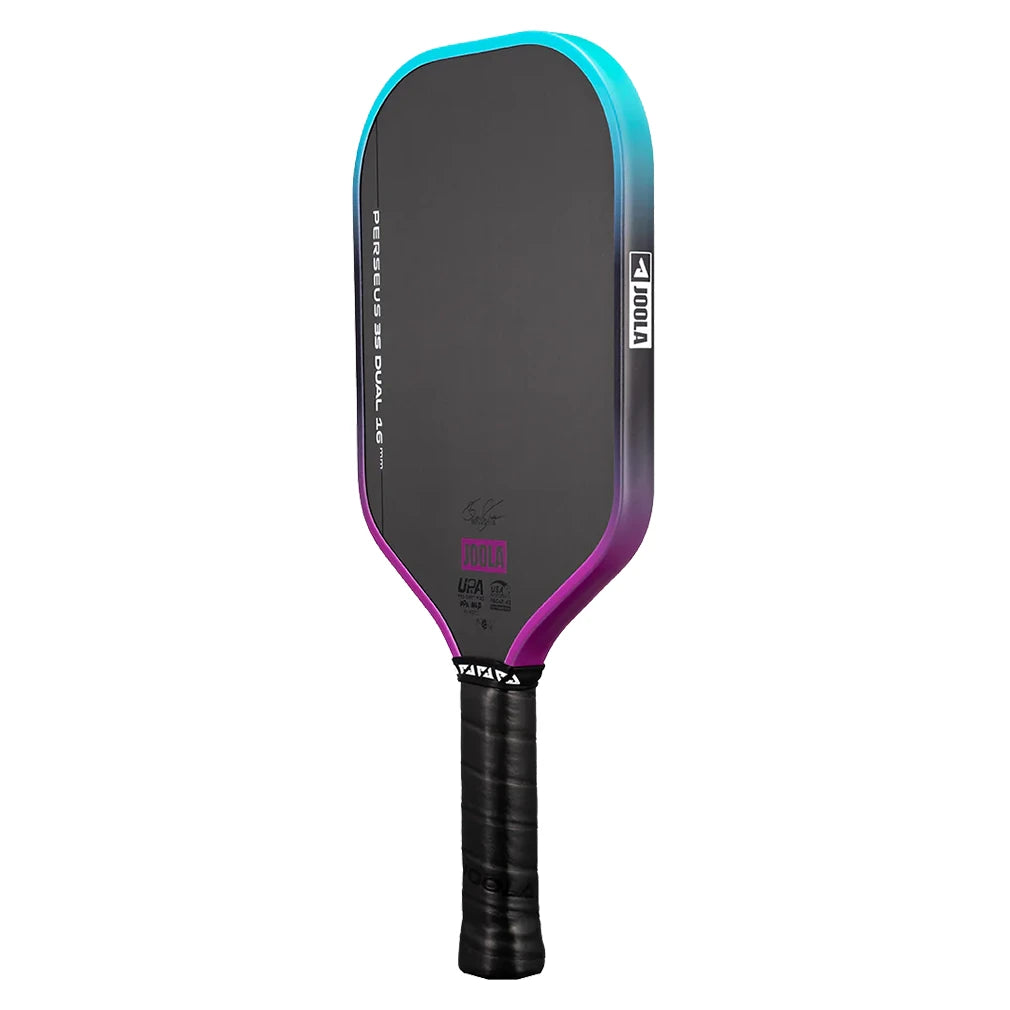 The Joola Perseus Pro 3S Dual 16mm Pickleball Paddle has an elongated and squared head shape to combine stability with hitting power. It features Joola's Propulse Core for explosive hitting power, which combined with the Hyperfoam Edge Wall for improved stability and sweet spot size gives you the finesse needed to sink in a finishing hit. Use the NFC chip in the handle to authenticate your paddle using the Joola Connect app for exclusive features.
