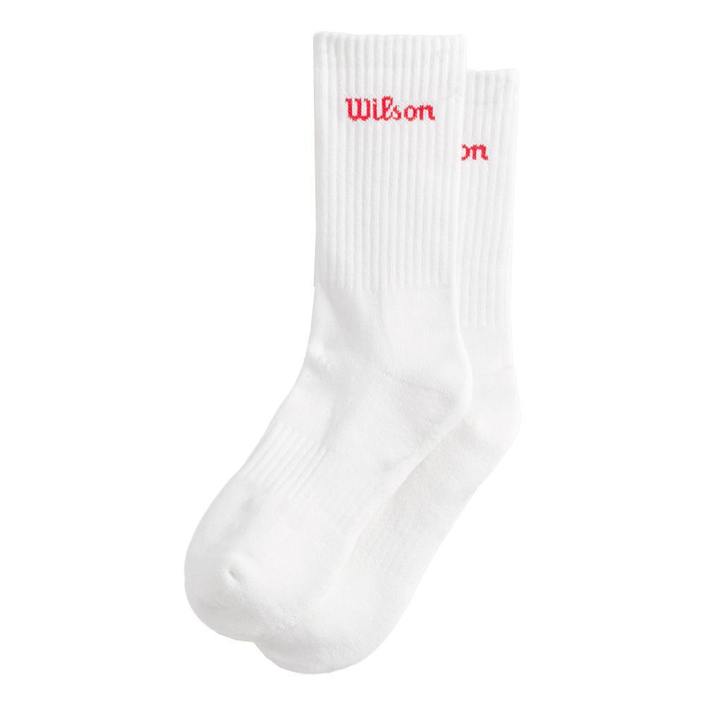Step into the limelight with the Wilson Unisex Crew Logo Socks. They're made with a soft cotton feel to provide premium comfort supported by ribbed knitting for a secure fit. The arch is also designed with a ribbed compression panel for additional support, plus the seamless toe construction minimizes irritation. Breathable materials with temperature-regulating properties keep your feet feeling cool so you can go the distance.