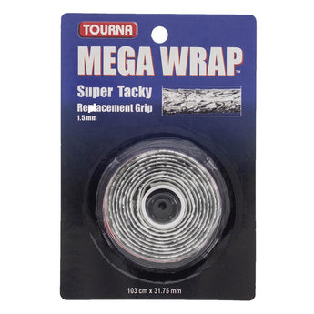 Personalize the way you play with the Tourna Mega Wrap Replacement Grip! Put this thin replacement grip on your racquet for the right amount of absorption with every swing. It's made with a special PU coating for maximum tackiness that resists twisting and slipping. With its thin construction, this grip will give you great feel making for easier grip changes.