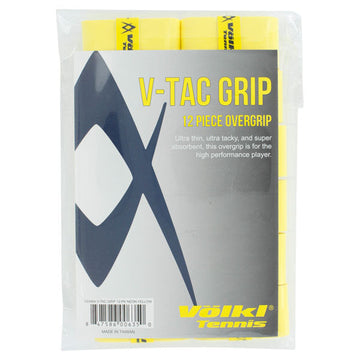 The Volkl V Tac Overgrip 12 Pack Neon Yellow has an ultra tacky feel with great absorbency. This ultra thin grip is made for the high performance player, to help you play your best .