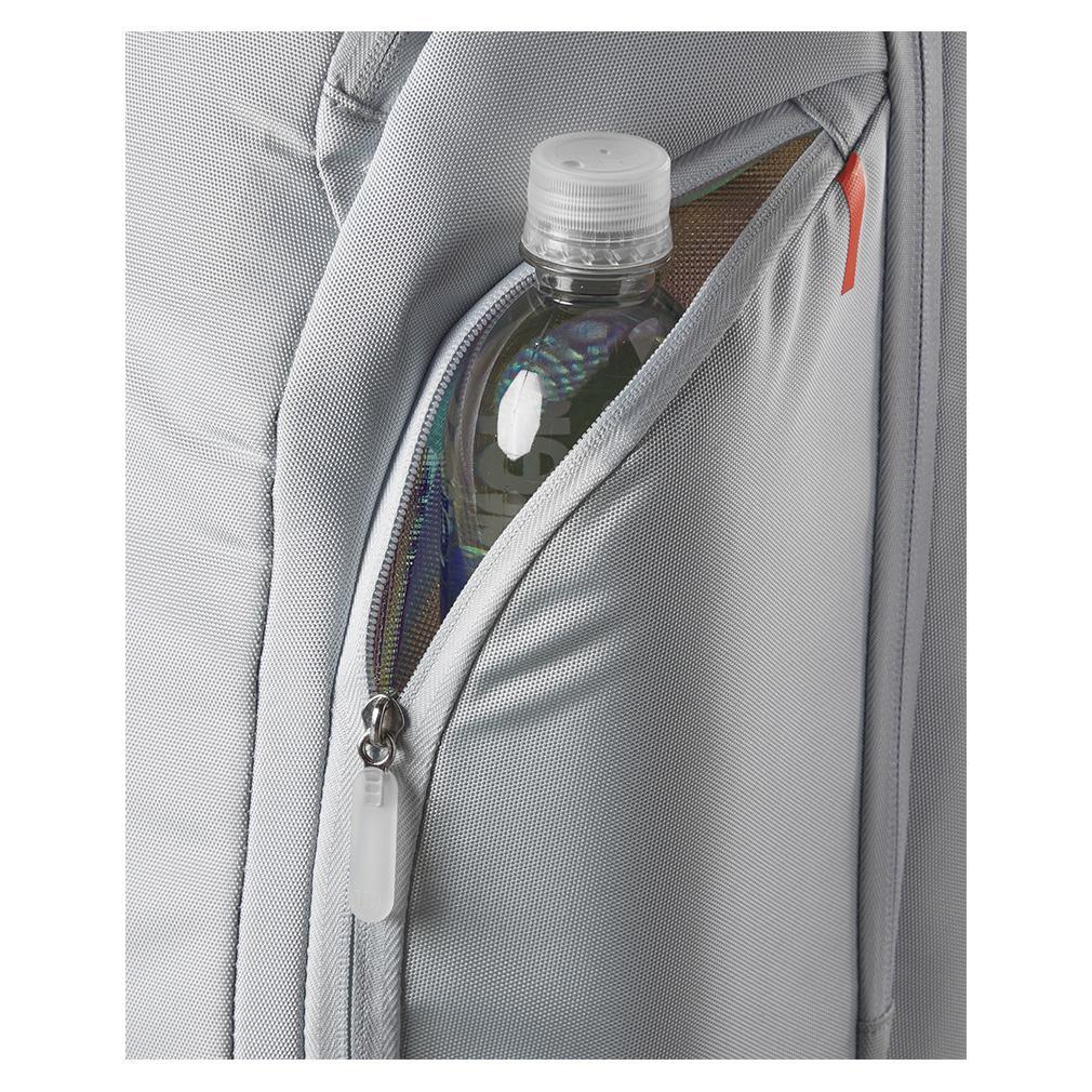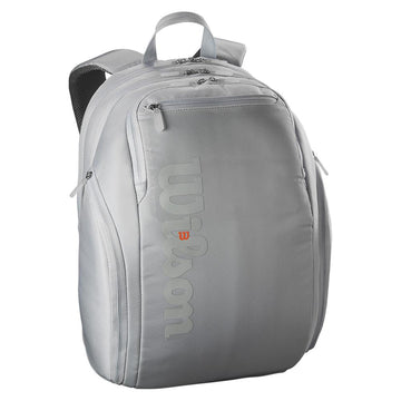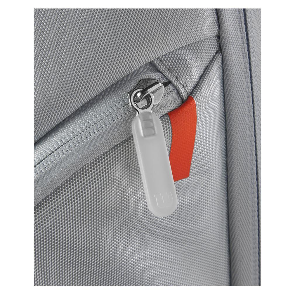 The Wilson Super Tour Shift Backpack has plenty of features, highlighted by a padded sleeve in the main compartment for a laptop or tablet. There is also a ventilated pocket for shoes or soiled clothing, a side zip pocket lined with Thermoguard to keep contents cool, and a padded compartment with locking zippers in the back to transport up to 2 racquets. The bag features a look that matches the attractive new Shift racquets.