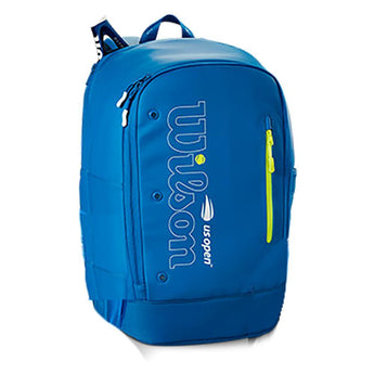 The Wilson US Open 2024 Tour Backpack is available in a timeless stone color. There is plenty of functionality for a variety of players. The durable yet lightweight polyester construction features one racquet compartment in the back up to 2 rackets, a spacious main compartment with a padded laptop sleeve and organizational slip pockets, and a ventilated pocket in front ideal for shoes or dirty clothes. Travel lightly and conveniently with elastic expansion on the side for water bottles or ball cans.