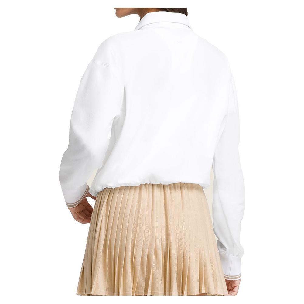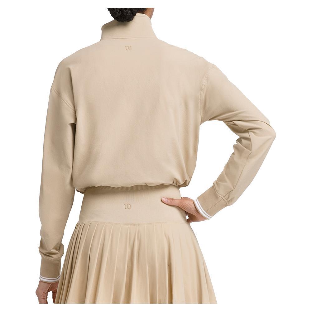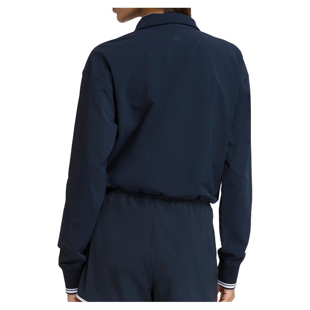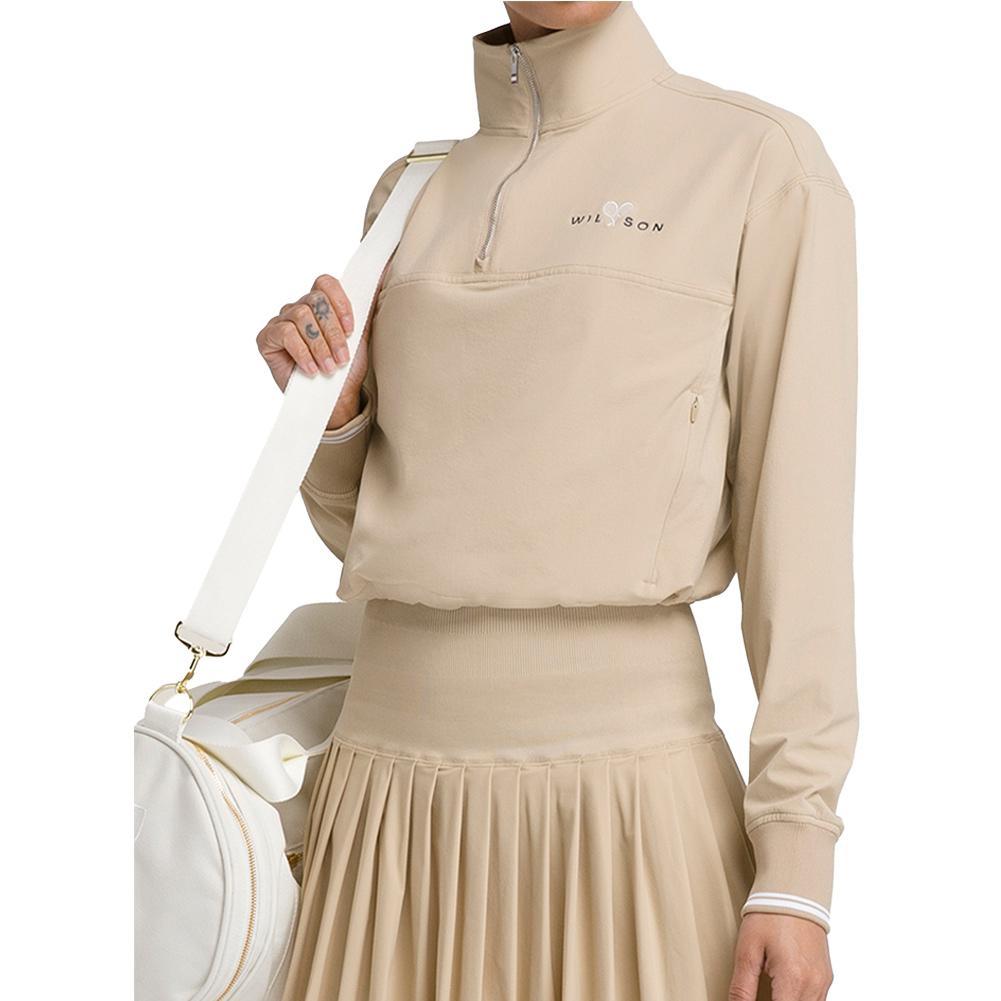 Experience ultimate comfort and style with the Wilson Women's Davenport Woven Pop-Over. This lightweight overlayer features a half-zip for temperature regulation and a mock collar for added coverage. The dropped shoulder design enhances mobility, while the bungee cord at the waist allows for controlled airflow. With its quick-drying, water-resistant fabric and stretch for a perfect fit, this slightly cropped pop-over is ideal for any activity.