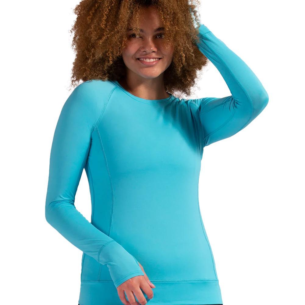 Ladies get a stylish upgrade to the classic sun shirt with the Bloquv Women's Pullover Top. A looser torso fit, ruched back panel, and banded waist ensure youll look great in the sun and the shade. Perfect as a sun shirt, rash guard, or SPF swimsuit coverup. Wear it for running, walking, swimming, boating, fishing, biking, paddle boarding, , golf, or looking sharp as you run errands.