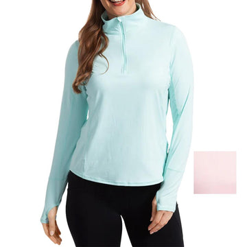 Elevate your workout in the Bloquv Women's Relaxed Mock Zip Court Top. The BloqTek technology and UPF 50+ protection keep you safe from harmful rays, while the moisture-wicking, ultra-soft material provides the comfort that you've been looking for. This quarter-zip top also has two convenient pockets on the sleeves, thumbholes, and a smooth, locking zipper. Pick your favorite neutral color and hit the court!