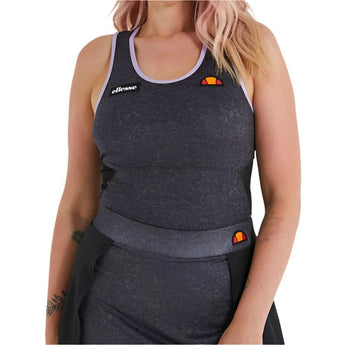Head to the courts in style sporting the Ellesse Women's Allium Court Tank Black Denim! The moisture wicking properties function to keep you dry and fresh all throughout the day, so you can stay focused on the game. The stretchy fabric will mold to your skin and only move with your movements. Not only is it stretchy, but it is breathable. The racerback provides support, so everything stays in place as you run up and down the court. Stay fresh and fashionable with Ellesse!