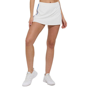Race past your opponent with the Lija Women's Elite Racer Court Skort White and Apricot. This skort features a unique look with a slight contrast pipe on the side. The breathable design will keep you one step ahead of your opponents. Lastly, the skort can be mixed and matched with the rest of your Court gear. Shop the latest Lija apparel at Court Express.