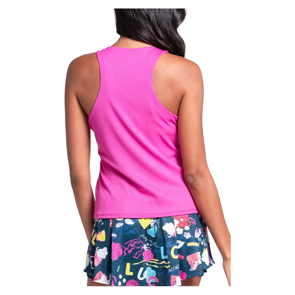 The Lucky in Love Women's Clubhouse Tank combines support and style for confident court performance. This tank features a flattering V-neckline and ribbed texture that adds visual depth. The racerback design allows full shoulder rotation during serves and groundstrokes. A built-in shelf bra provides comfortable support without the need for additional layers. Moisture-wicking fabric helps regulate temperature throughout your match, keeping you dry from first point to final set.