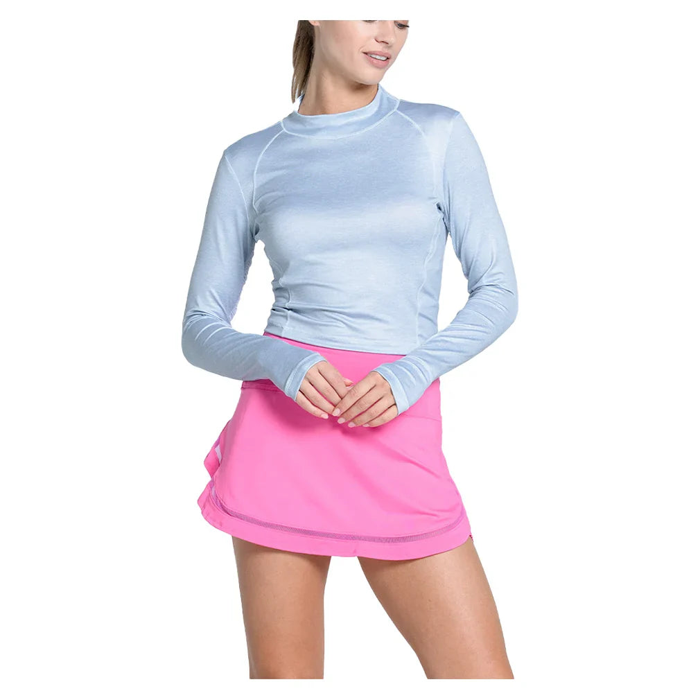 Step on the court in style as you wear the Lucky In Love Womens Mock Neck Hip Fit Long Sleeve Court Heather Grey. Soft, breathable fabric keeps you warm and stylish, perfect for cooler days on the court. The mock neck is not only stylish, but also comfortable for on and off the court looks.