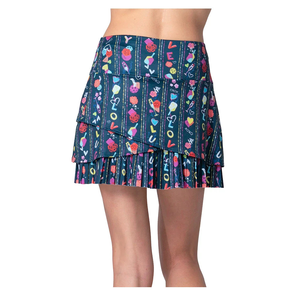 Elevate your game with the Lucky In Love Women's High Waist Pinstripe Court Skort. Designed for both performance and style, this skort features built-in shorts that provide coverage and comfort, subtly visible through its chic, modern design. The high waistband with a front drawstring tie allows for a customized, secure fit, while the bold shibori stripe pattern adds a vibrant, dynamic look to your on-court ensemble. The rich blue hue makes it a standout choice for the spring and summer season, ensuring you play with confidence and flair. Stay comfortable, stylish, and match-ready with this must-have skort.