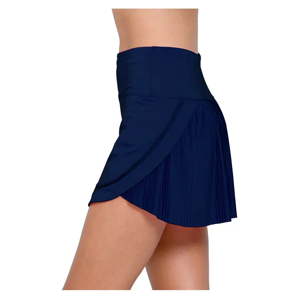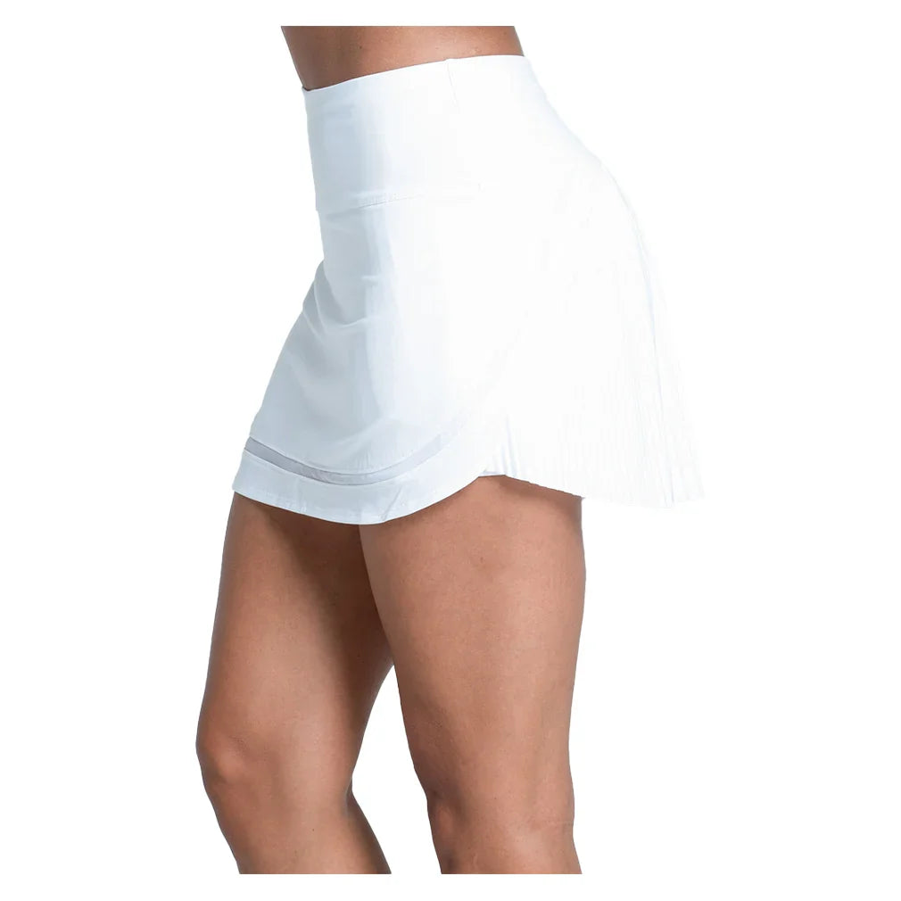 Lucky In Love Women's Revive Court Skort, a perfect blend of style and functionality. Featuring knife pleats in the back, this skort offers a dynamic silhouette that moves with you on the court. The comfortable wide elastic waistband ensures a secure fit, while ruche detailing on the sides adds a touch of elegance. With a curved hemline and built-in undershorts for added coverage and confidence, this skort is designed to enhance your performance and style.