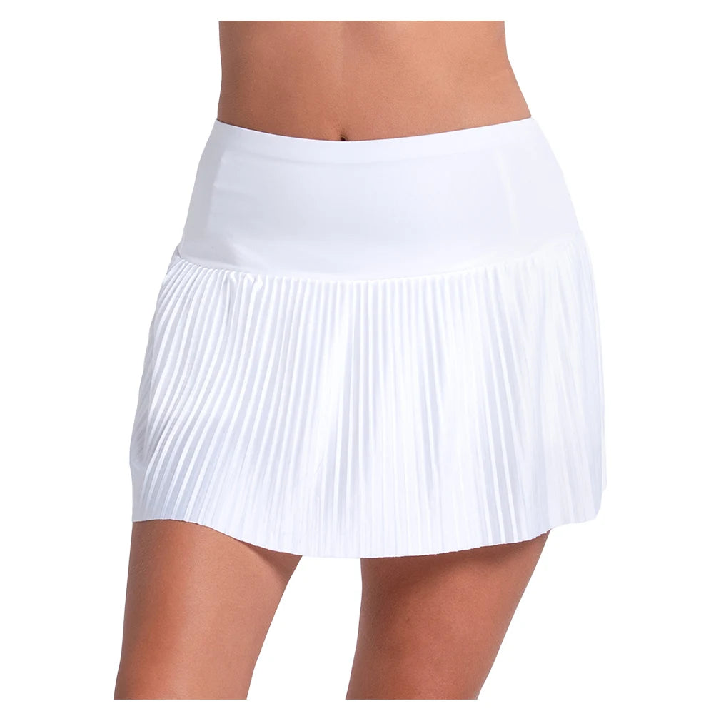 Lucky in Love Women’s Tempo Pleated Skort delivers a sharp, court-ready look designed for confident movement and everyday performance. A wide elastic waistband creates a secure, comfortable fit that stays in place through quick sprints and lateral moves, while built-in undershorts provide dependable coverage during active play. Crisp knife pleats add classic tennis style and enhance mobility, giving this skort a dynamic, flowing feel with every step. Versatile and polished, this design transitions effortlessly from competitive matches to practice sessions.