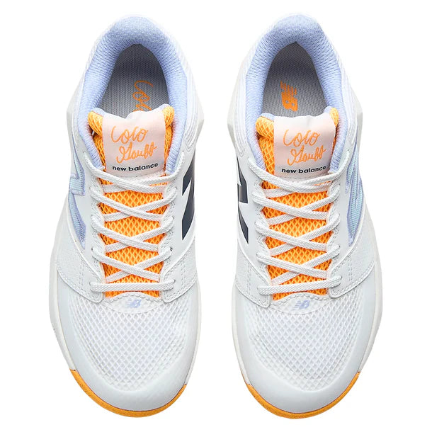 Take the court in the fashionable and functional New Balance Women's FuelCell Delray Court Shoe. Featuring a throwback 1990s aesthetic, the Delray uses an exposed nylon plate for added torsional stability. It is equipped with full-length FuelCell foam for lightweight responsiveness. The Delray features a lower-cut ankle collar to reduce weight and provide more ankle mobility than the Coco CG2. A solid NDurance rubber outsole offers impressive durability for long matches. The FuelCell Delray can be styled off-court as well.