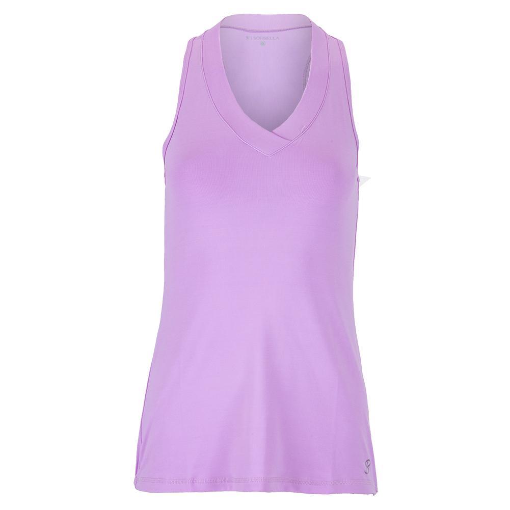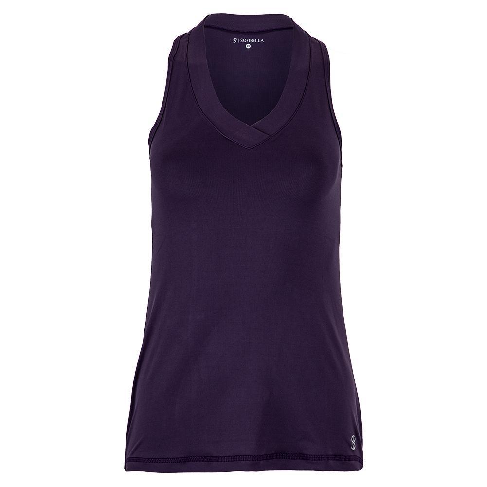 Amp up your performance in the Sofibella Women's Racerback Court Tank. Your classic Court racerback gets an update with a sleek and streamlined silhouette, vibrant colors, and a deep V-neck. Made with signature Sofibella performance fabric, this top is equipped with UV protection, anti-bacterial properties, Stay-Dry moisture-wicking technology and memory stretch design so you can stay focused on the sport and play your best.