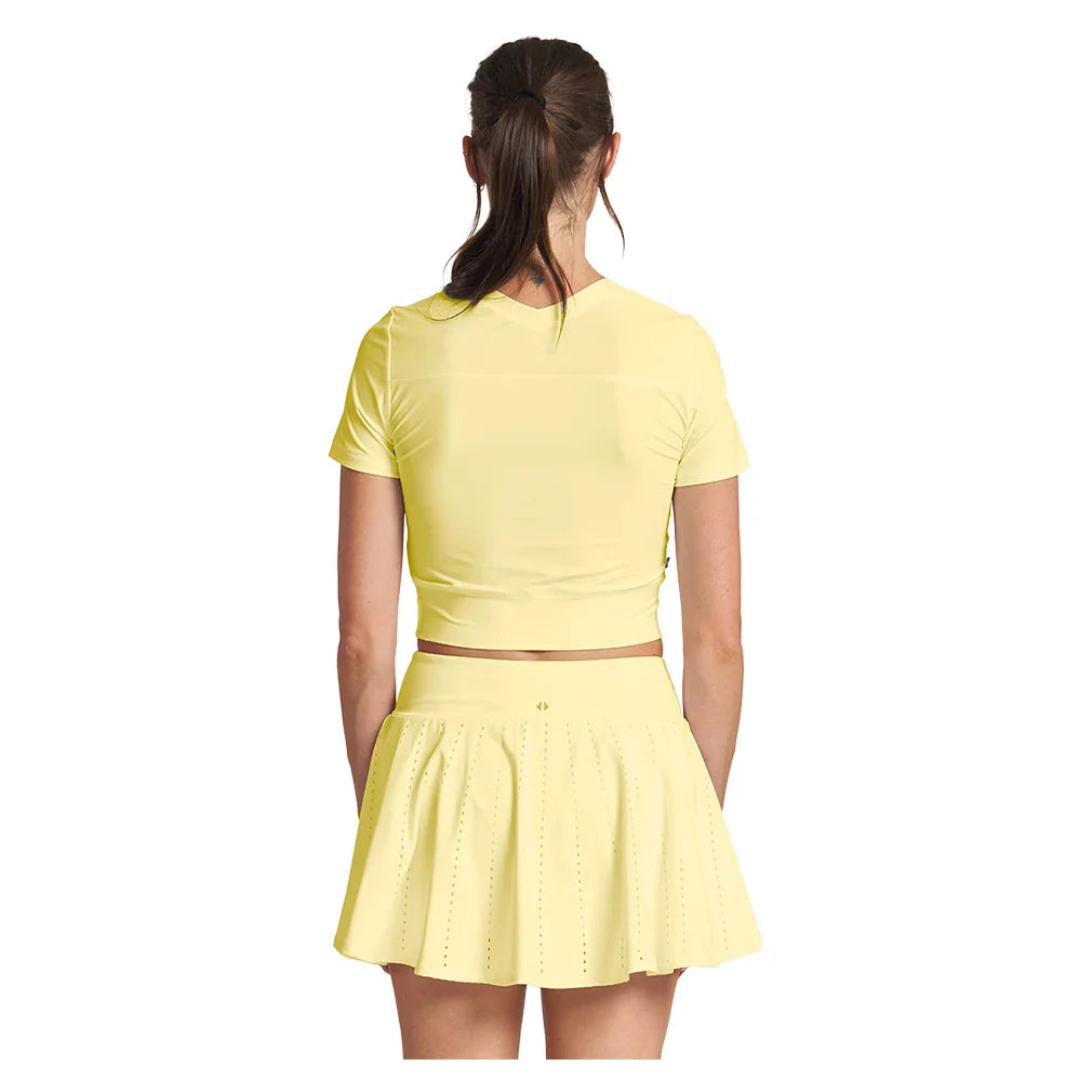Stay cool and confident in the Thrive Societe Womens Double-V Crop Court Top, a sleek blend of style and performance. Designed with a flattering double V-neck and a modern meet-and-greet length, this fitted top moves effortlessly with you. Crafted from breathable, moisture-wicking performance knit, it keeps you dry and comfortable through every match and workout. With four-way stretch for unrestricted motion, this top is the perfect balance of function and fashionon and off the court.
