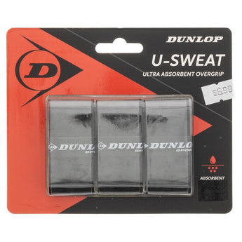 If sweat is hindering your performance on court, the Dunlop U Sweat 3 Pack Overgrip Black is your ticket to success! The polyurethane outer layer and ultra absorbent non-woven base layer ensures your grip stays secure, minimizing slipping even in the wettest conditions. The comfortable grip remains soft and easy to hold. This grip is used by up and comers Heather Watson and Liam Broady, as well...