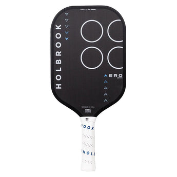 The Holbrook Aero X 16mm Pickleball Paddle has an elongated face with a unibody design that maximizes power. Edgecraft foam injected around the perimeter widens the sweet spot for more consistency while eliminating unwanted vibration, giving a refined feel. Its unidirectional carbon fiber surface features high grit for optimal ball control and spin. Dynamic weight distribution gives a balanced swing weight for swift maneuverability