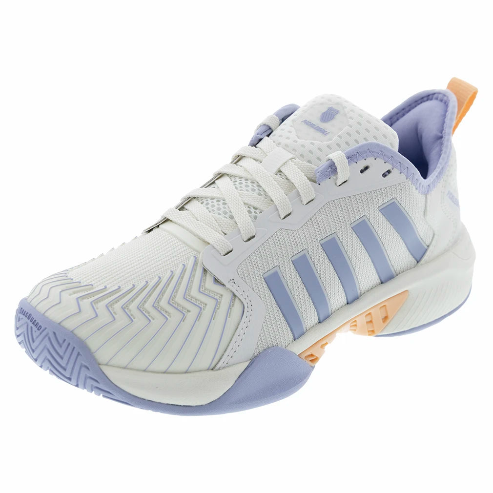 The K-Swiss Women's Pickleball Supreme Shoe is designed for competitive players who demand the most from their footwear. The lightweight shoe incorporates K-Swiss' Surge 7.0 midsole cushioning for energy return. The upper features a new Durawrap Flex for better abrasion resistance and the tough Dragguard 7.0 outsole.