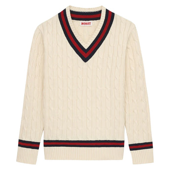 Stay cozy this season with the Boast Men's Cable Knit Sweater. Soft thermal yarns made in part with cotton and wool provide the utmost comfort; meanwhile the breathability and moisture-wicking properties keep you from feeling stuffy. A V-neck design and striped details create a sophisticated look that's just as perfect for the pickleball court as it is by the fireside.   Technical Benefits: Bre...