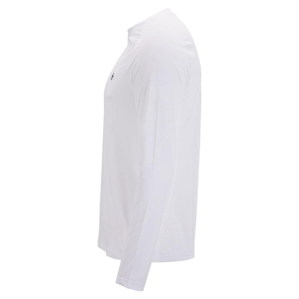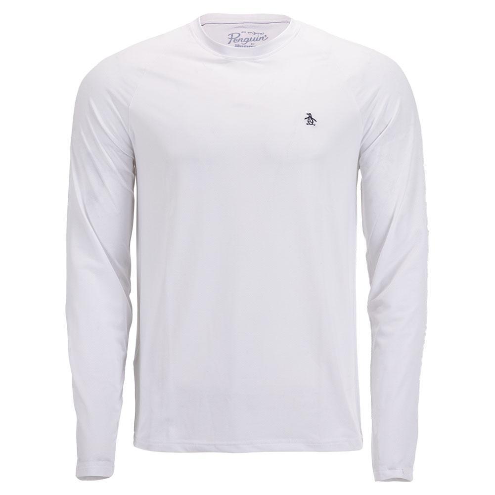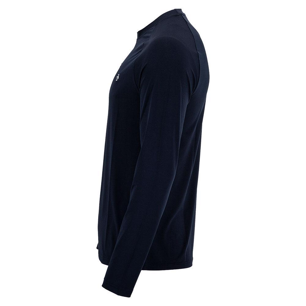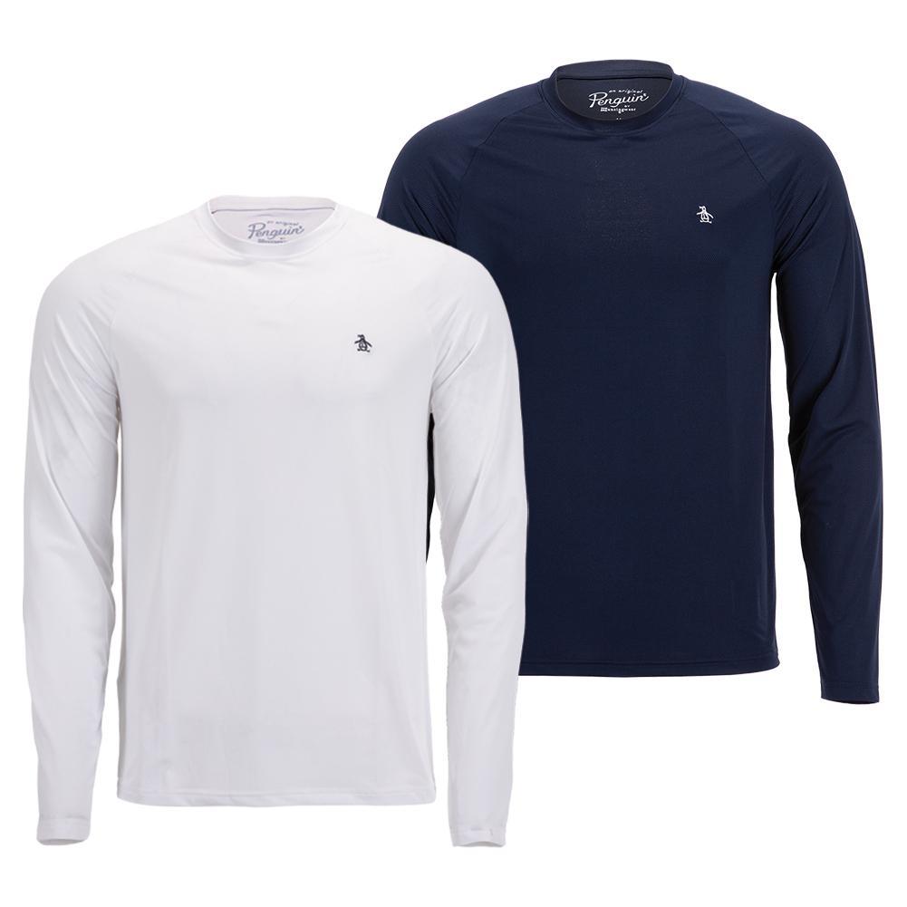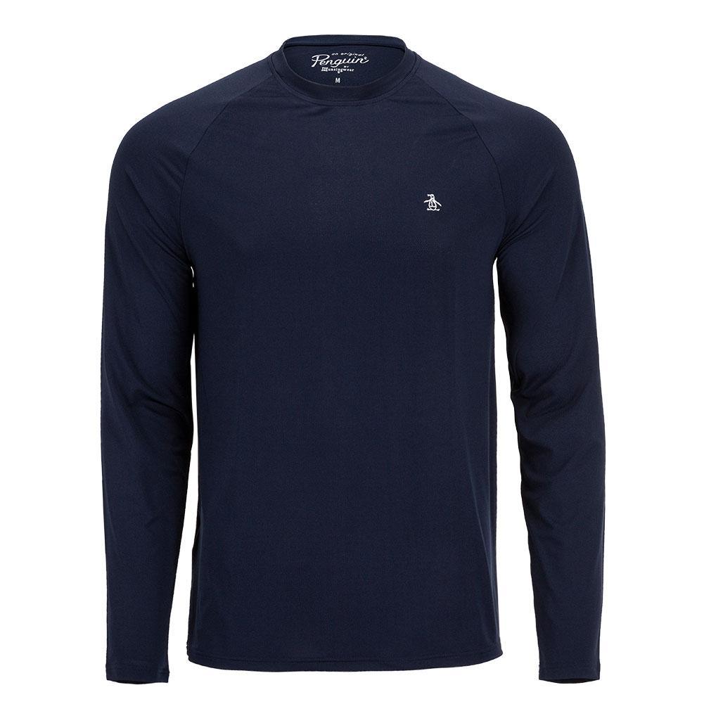 Suit up this fall with the Penguin Men's Raglan Long Sleeve Court Pull Over in Delphinium Blue. The crew neck top makes it easy to slip in and out of easily. Raglan-style sleeves are shaped naturally with your arms, letting you move more freely and with confidence. Made with high gauge ventilated fabric, this shirt is very breathable and comfortable. The high-quality, recycled material blend is flexible and minimizes your impact on the environment.