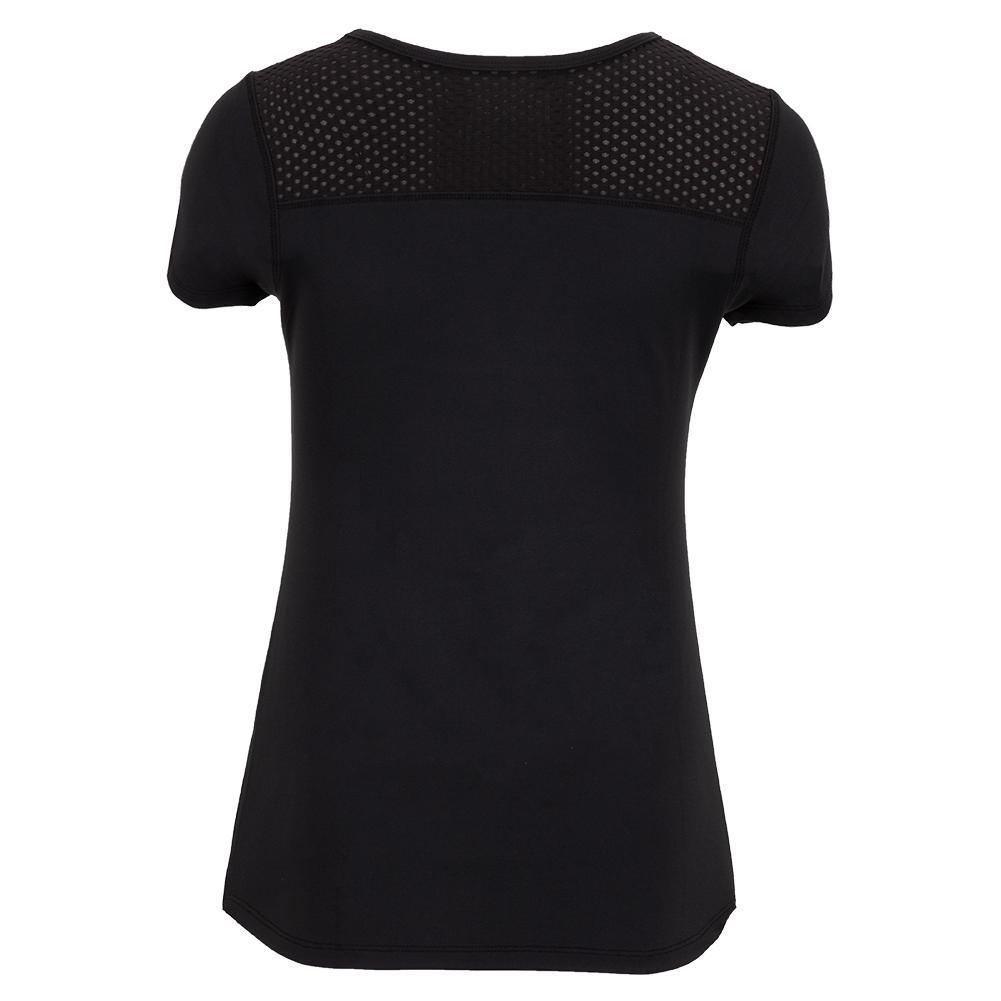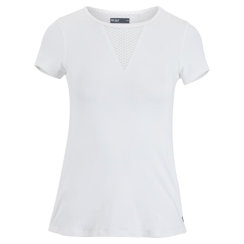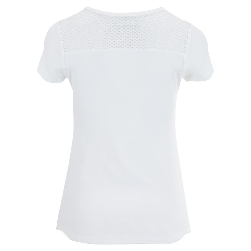 Get into the action with our Lija Women's Deep V Court Top. This top has a simple crewneck with a tonal mesh v-neck panel. It has a classic flattering silhouette and a standard short sleeve length. The tee-shirt has a skimming fit and is fully equipped with moisture-wicking technology, quick-drying fabric, and four-way stretch.